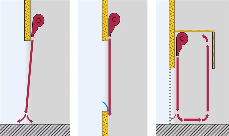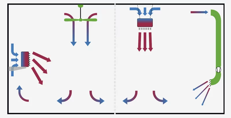 Bei Luftheizungen in Hallen ist aus Gründen der Behaglichkeit und der Energieeffizienz daher besonders auf eine Minimierung dieser Temperaturschichtung zu achten. Hierfür können verschiedene Ansätze verfolgt werden, ggf. auch in Kombination: